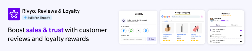 Boost sales & trust with Rivyo: Collect reviews, build loyalty, and enhance your online store’s growth.